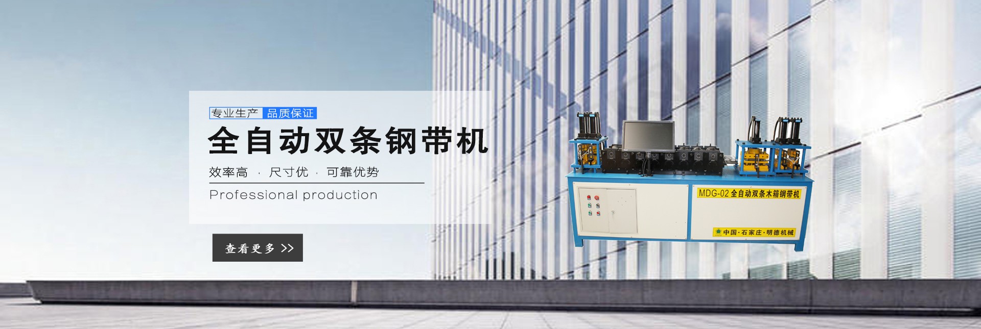 石家莊明德包裝機(jī)械有限公司是國內(nèi)專業(yè)生產(chǎn)木全自動(dòng)木箱鋼帶機(jī)、半自動(dòng)公母扣木箱打扣機(jī)、全自動(dòng)雙排孔定長切斷機(jī)、美式托盤打釘機(jī)械、托盤刨槽機(jī)、倒角機(jī)、木包裝箱、木托盤的生產(chǎn)廠家。